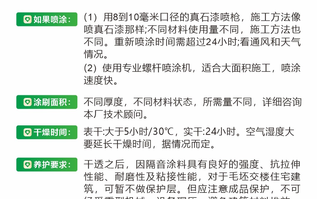 由新型的高性能阻尼材料加入適量的其它補(bǔ)強(qiáng)材料、阻尼吸音、防腐材料等以及相關(guān)水性助劑配制而成。該產(chǎn)品符合國(guó)家和行業(yè)標(biāo)準(zhǔn)。附著力好、封閉性好、水性環(huán)保、強(qiáng)效隔音、阻絕減震 、材料更輕薄、更保溫。適用于樓地板底、內(nèi)墻體表面,內(nèi)天花板頂。