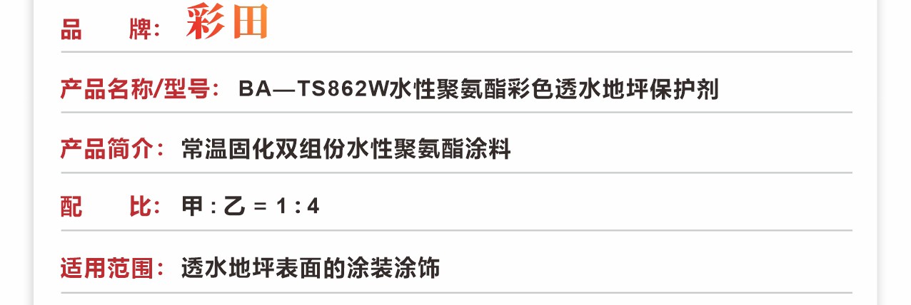 BA-TS862W水性聚氨酯彩色透水地坪保護劑