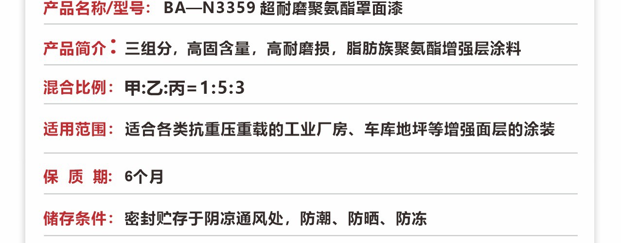 超耐磨聚氨酯罩面漆-BA-N3390