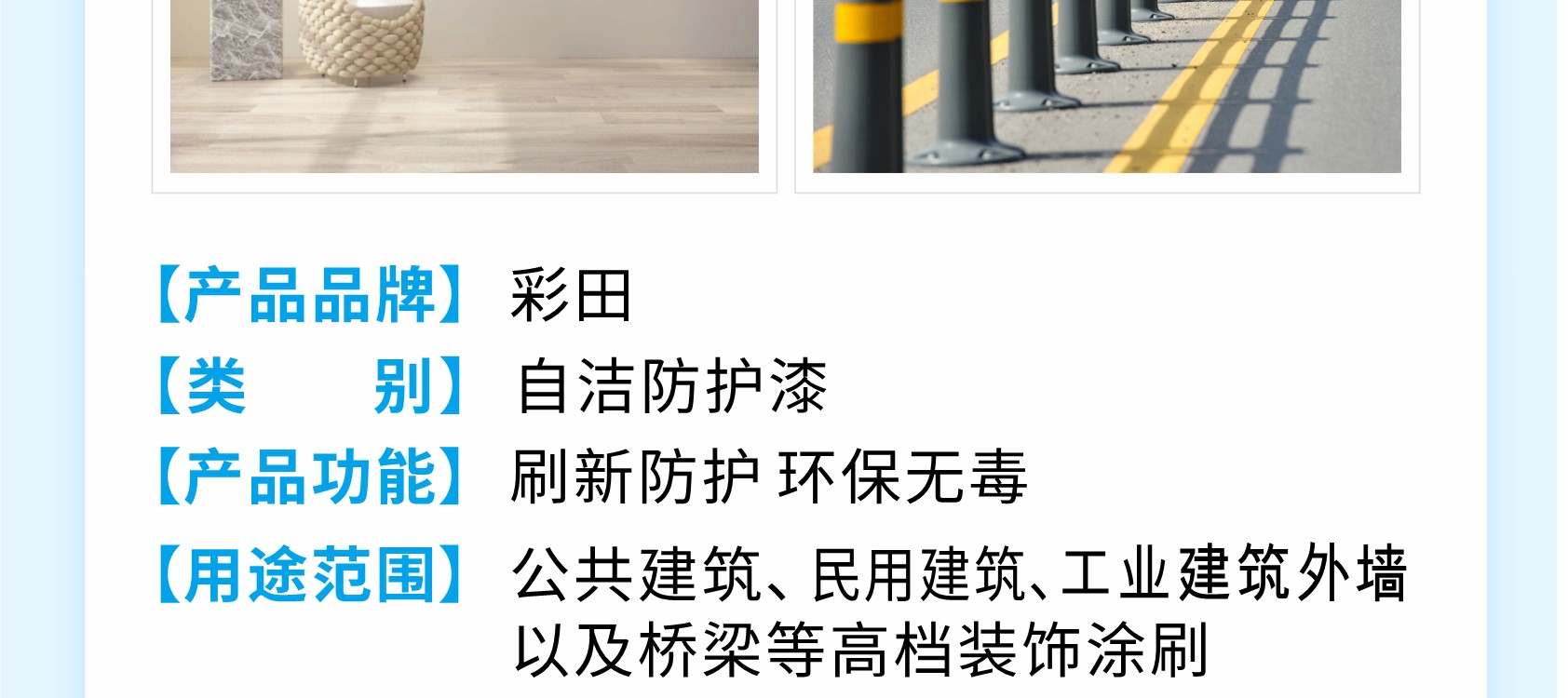 純水性防護涂料,單組分,主要成分為高檔丙烯酸乳液。具有優異的耐候性、耐水性、耐擦洗性。不含有機溶劑,無毒無污染,不燃不爆,以水為分散介質,可以用水稀釋和清洗涂裝用具,屬于環境友好涂料。